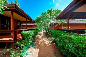 C’est sur l’îlot de Temae, à Moorea, que dresse le Moorea Golf Lodge. Pension aux saveurs et à l’exotisme polynésienne, le Moorea Golf Lodge acceuille les voyageurs les plus téméraires en quête de repos au sein de son idylle. Trouvant sa source entre terrre et mer, le Moorea Golf Lodge offre à ses résidents quatre demeures au nom d’îles emblématiques de la Polynésie Française? Toutes taillés dans le bois, ces résidences authentiques allient le confort de la modernité à celui du charme tahitien. Les visiteurs sont bercés par les clapotis des vagues, le sifflement du vent et les doux chants des oiseaux endémiques.